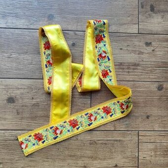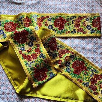 Šatky v ponuke sa líšia veľkosťou, materiálom aj vzorom – od jemných kvietkovaných až po výraznejšie kontrastné motívy. Niektoré sa viažu pod bradu, iné cez plecia alebo do vlasov. Opasovačky a stuhy dodajú kroju tvar a šmrnc, no viete ich použiť aj v bežnom oblečení – ako opasok k šatám, mašľa do vlasov či dekorácia na kabelke. Pri popise kusov vždy uvádzam, na akú príležitosť sú podľa mňa najvhodnejšie: svadba, vystúpenie, fotenie, ľudová slávnosť alebo jemný folklórny akcent na každý deň.