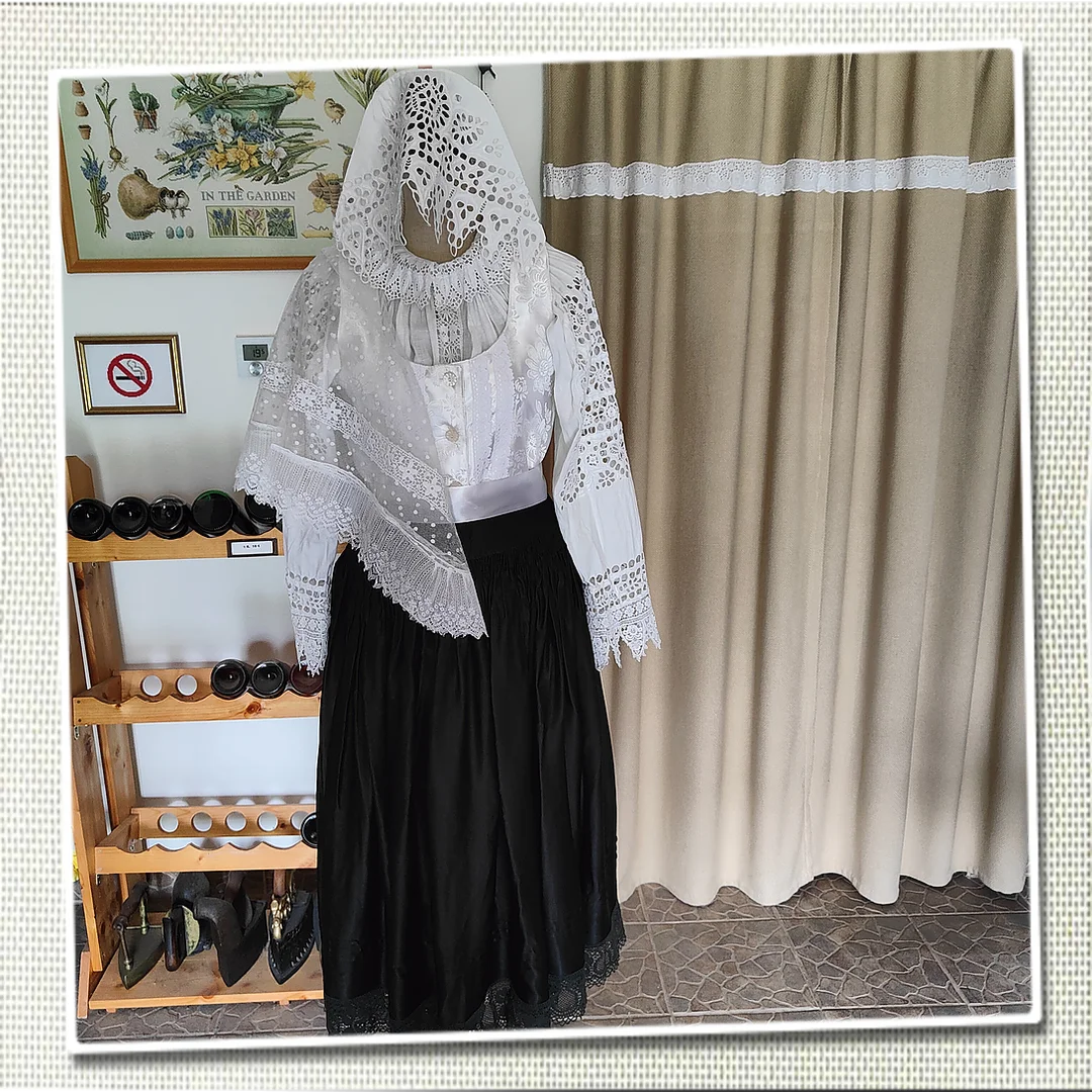 Starý smútočný kroj - Piešťany - ľavá strana Váhu. Pruclik replika, ostatné originál.